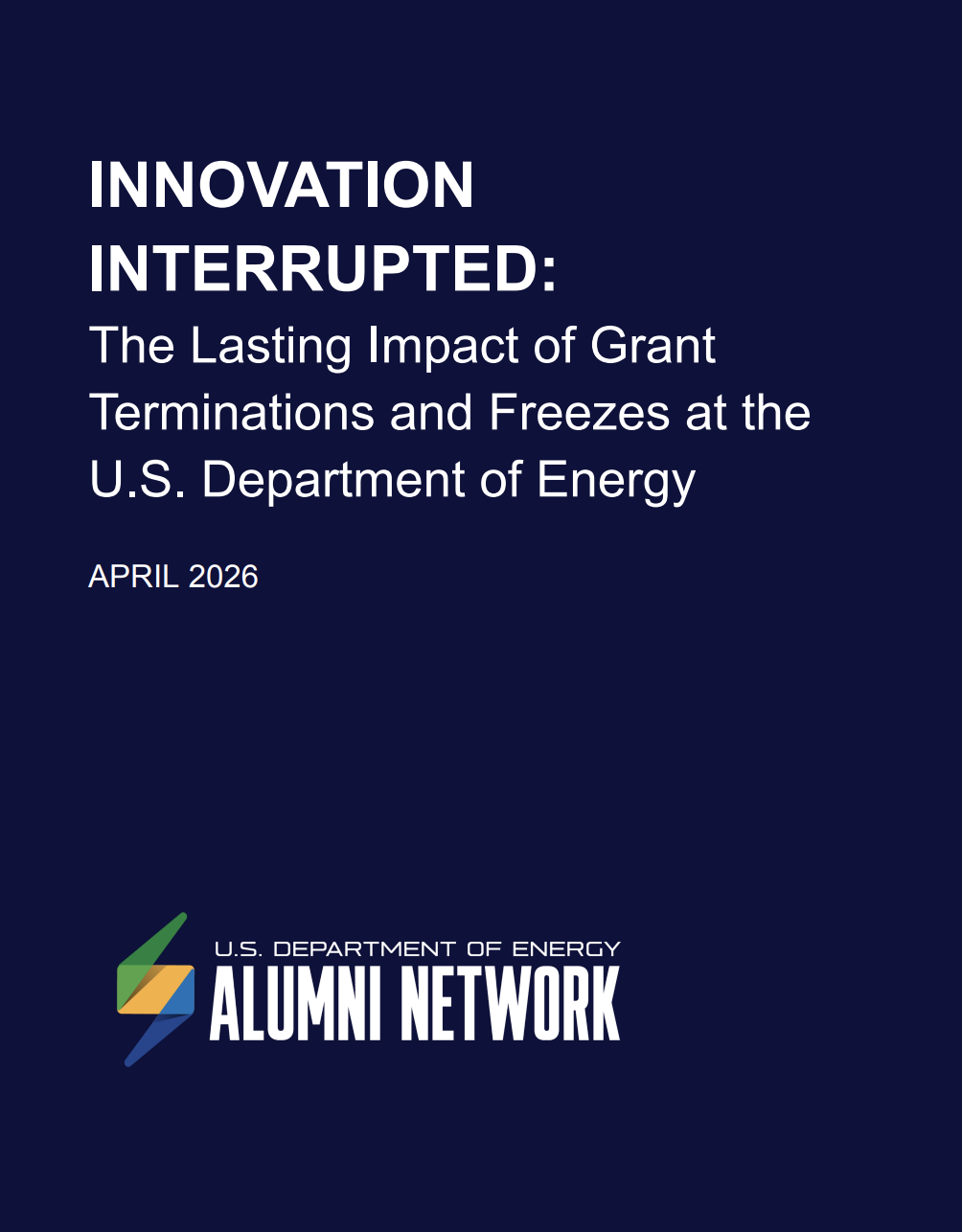 The U.S. Department of Energy (DOE) Alumni Network issued its first official report, “INNOVATION INTERRUPTED: The Lasting Impact of Grant Terminations and Freezes at the U.S. Department of Energy.” The report details the events leading up to DOE’s announcement of the termination of 321 energy projects worth $7.5 billion in federal funding on October 1, 2025.